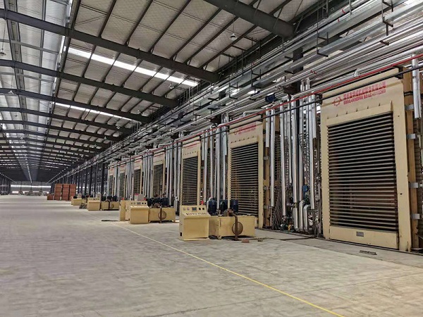 我司非常榮幸能夠為四川省威遠縣達威木業(yè)有限公司提供生態(tài)板設備,日產(chǎn)量為1萬張/天。于2019年中旬成功上線生產(chǎn)高質(zhì)量的生態(tài)板。
